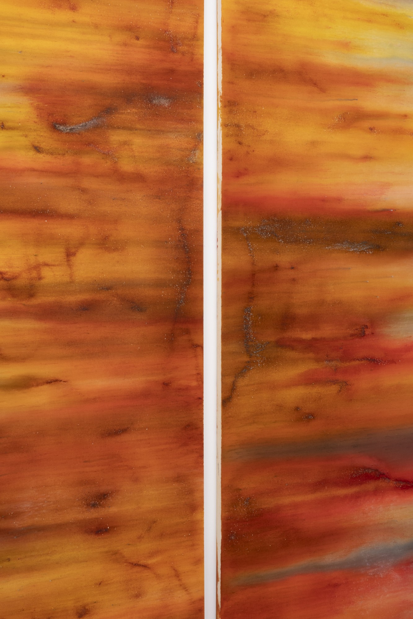 diffusion, des harmonies de couleurs presque dissonantes. Les traces de poudre (du pigment de teinture