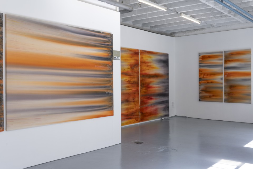 Pour standard/deluxe, Guillaume Ehinger présente une nouvelle série de toiles teintes.