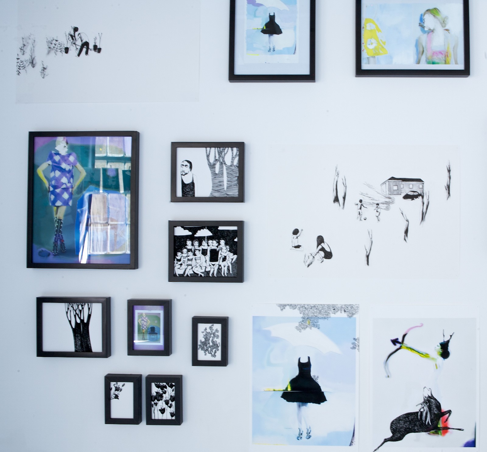 Des images d'images, des traces d'autres dessins qu'on imagine ailleurs trop intimes pour être supportables, les travaux de Marie Taillefer et de Rachel Bloch nous proposent des murs de morceaux d'histoires infinies dans lesquelles il est bienvenu de se perdre.