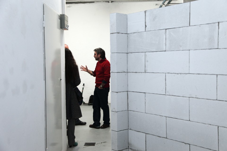 « So Far So West » (Si loin, si à l’Ouest) est la première exposition personnelle de Marco Fedele di Catrano (*Rome, 1976) en Suisse, organisée en collaboration avec Standard-deluxe, Lausanne. Sous ce titre en forme d’affirmation ambiguë, l’artiste rassemble des installations, des photographies et de la vidéo qui se confrontent avec la question du contrôle politique de l’espace public et privé, la notion occidentale de frontière et la mémoire de l’architecture. Sa réflexion prend la forme concrète d’un mur qui traverse l’espace d’exposition – une structure qui dérive de la superposition des planimétries de la maison-atelier romaine de Marco Fedele di Catrano et de celle de Standard-deluxe –, de deux projections vidéo et du portrait-manifeste de l’artiste Gülsün Karamustafa.
