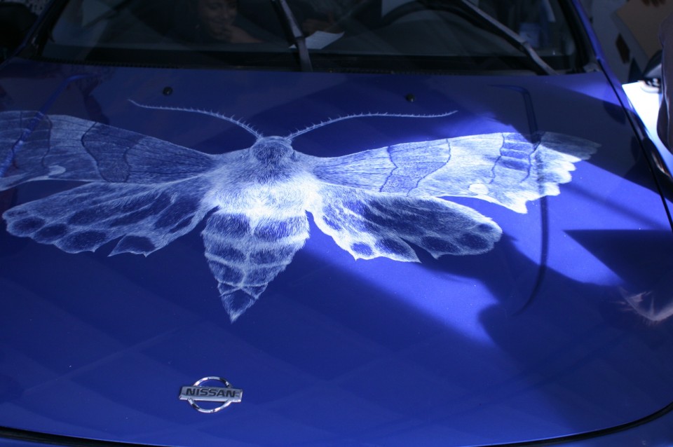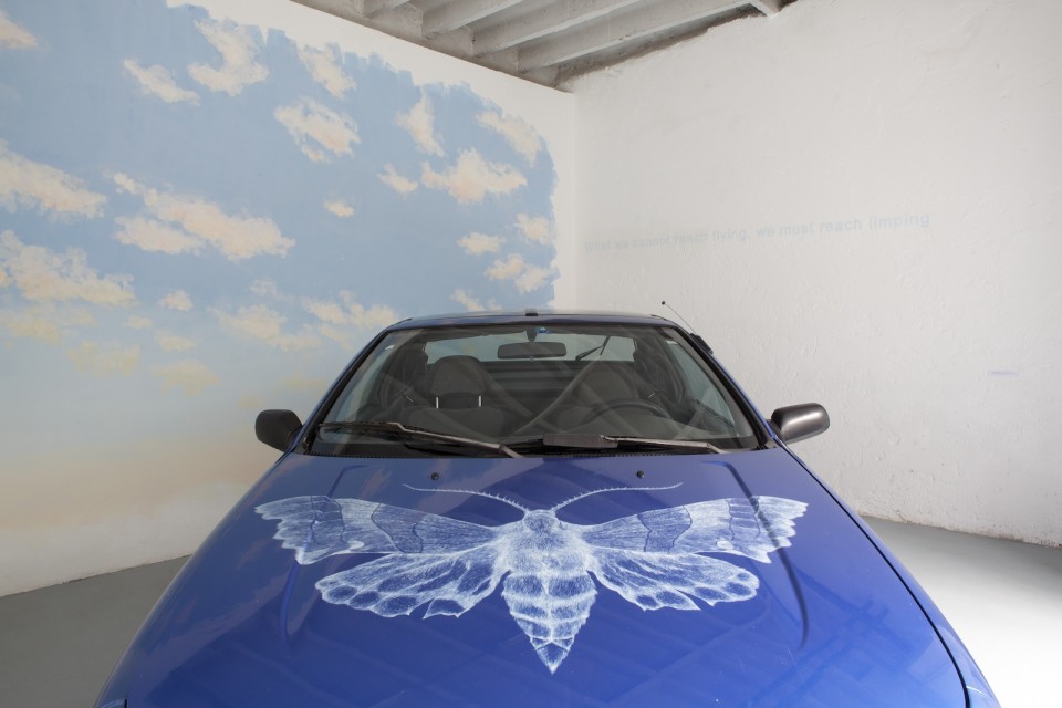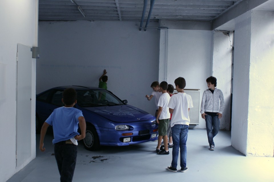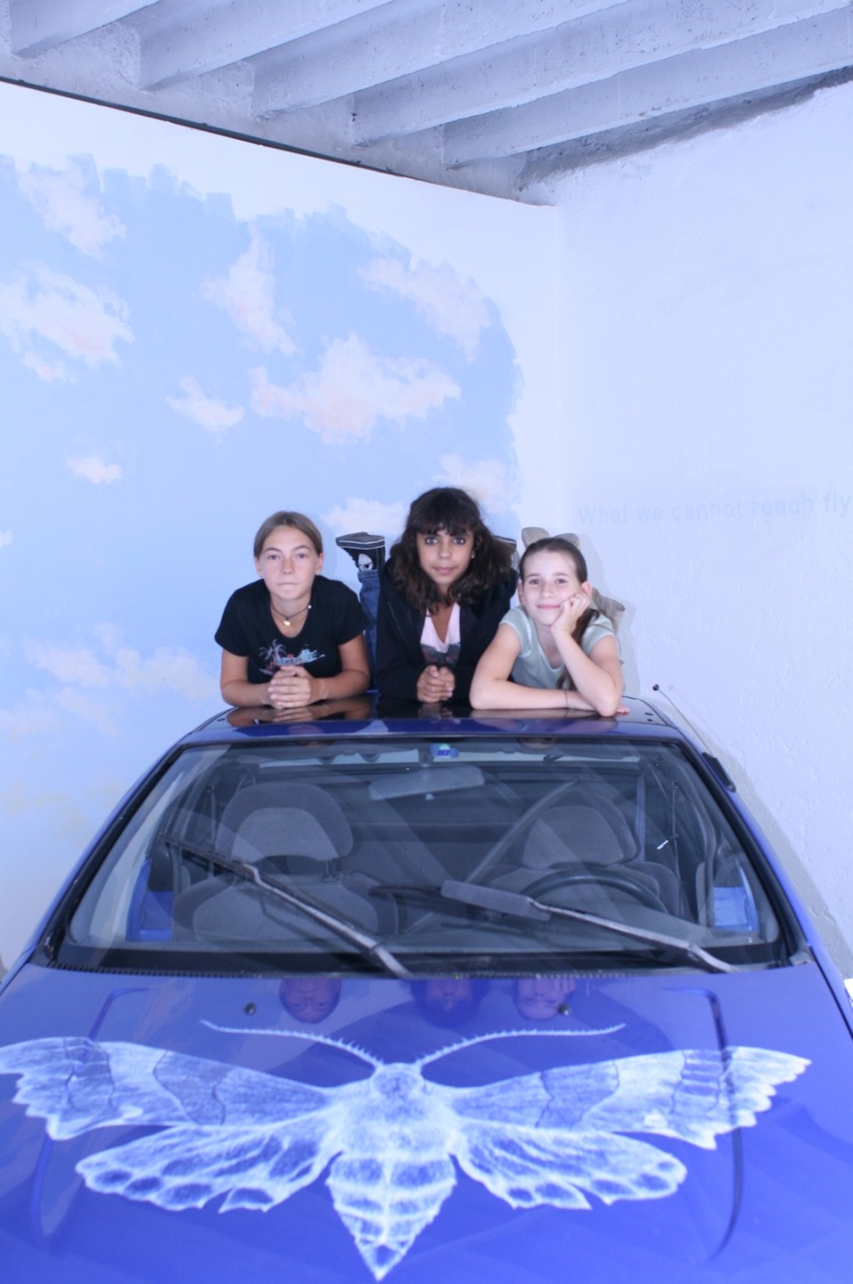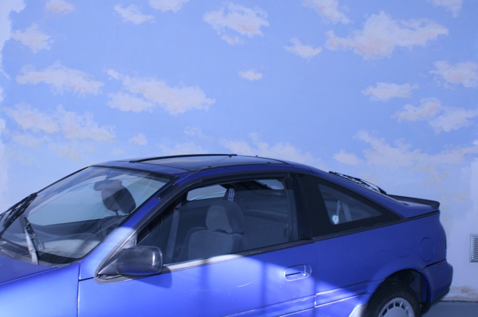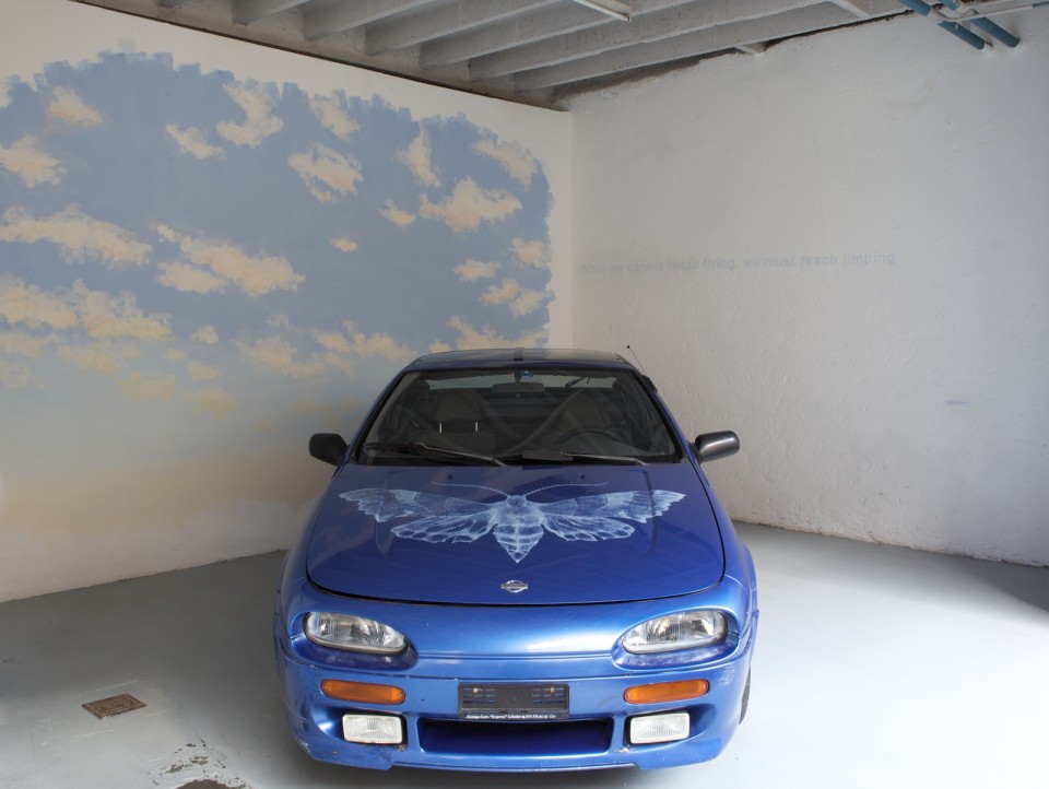 L’une d’entre nous possédait une Nissan 100NX, bleu électrique. Sa plastique frôlant l’esthétique du Tuning nous fascinait. Banale et excessive à la fois, cette voiture a donné naissance à plusieurs fantasmes. Finalement, chacune de nous l’a investie à sa manière, pour y inscrire son propos et répondre à celui de l’autre. La voiture est devenue l’élément rassembleur, le support d’un Tuning à deux voix, dans les deux sens du terme: personnaliser un objet et mettre en accord.