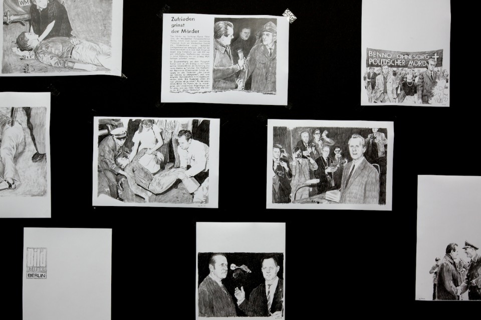 Une série de 23 dessins présente Karl-Heinz Kurras, un policier responsable de la mort de l'étudiant Benno Ohnesorg tué le 2 juin 1967 par balle pendant une manifestation. L'incident s'est produit devant l'opéra de Berlin lors d'une manifestation organisée par des étudiants contre la visite d'État du Shah d'Iran. La police est intervenue sans raison apparente, et avec la plus grande sévérité contre les étudiants. Ohnesorg fut abattu d'une balle dans l'occiput par le policier Kurras, alors que d'autres lui assenèrent simultanément plusieurs coups de matraque. L'assassinat de Benno Ohnesorg eut des conséquences. Dans le procès qui suivi, des éléments de preuve importants (y compris un morceau de crâne d'Ohnesorg) ont disparu. Des inexactitudes flagrantes ont été acceptées par le tribunal, permettant au procureur de modifier l'accusation d'homicide volontaire par homicide involontaire. Ce procès mît en lumière la brutalité de l'appareil de l'Etat, qui en l'occurrence était encore et toujours en mains d'un grand nombre d'ex-nazis. En fin de compte, Kurras fut libéré grâce à la collusion de la justice, de la police et de la presse partisane. Ces événements scandaleux ont conduit à une radicalisation du mouvement des étudiants, dont certains ont, en fin de compte, fini par choisir la voie du terrorisme.