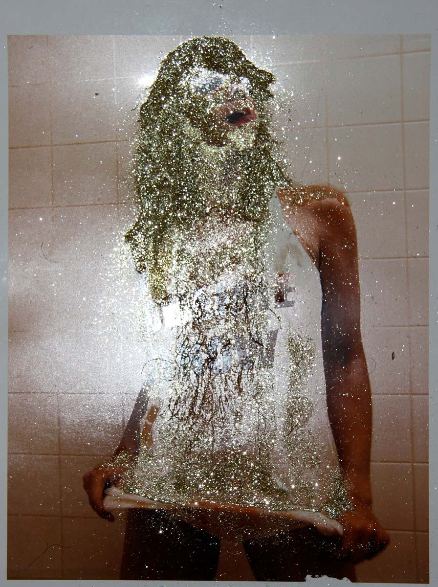 Echo, les photographies de Maya Rochat se cachent sous un pelage poilu, pailleté et gluant. Mi-femme, mi-animale, les griffes acérées.