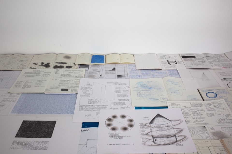 Une table, et plus spécifiquement une table vide, représente un processus intérieur. La surface supérieure de la table est conçue pour y poser des objets, pour travailler ou pour y manger, mais pour moi c’est un espace pour dessiner, réfléchir et rêver. Cet aspect physique horizontal de la surface est ce que je voulais traduire dans cette installation.