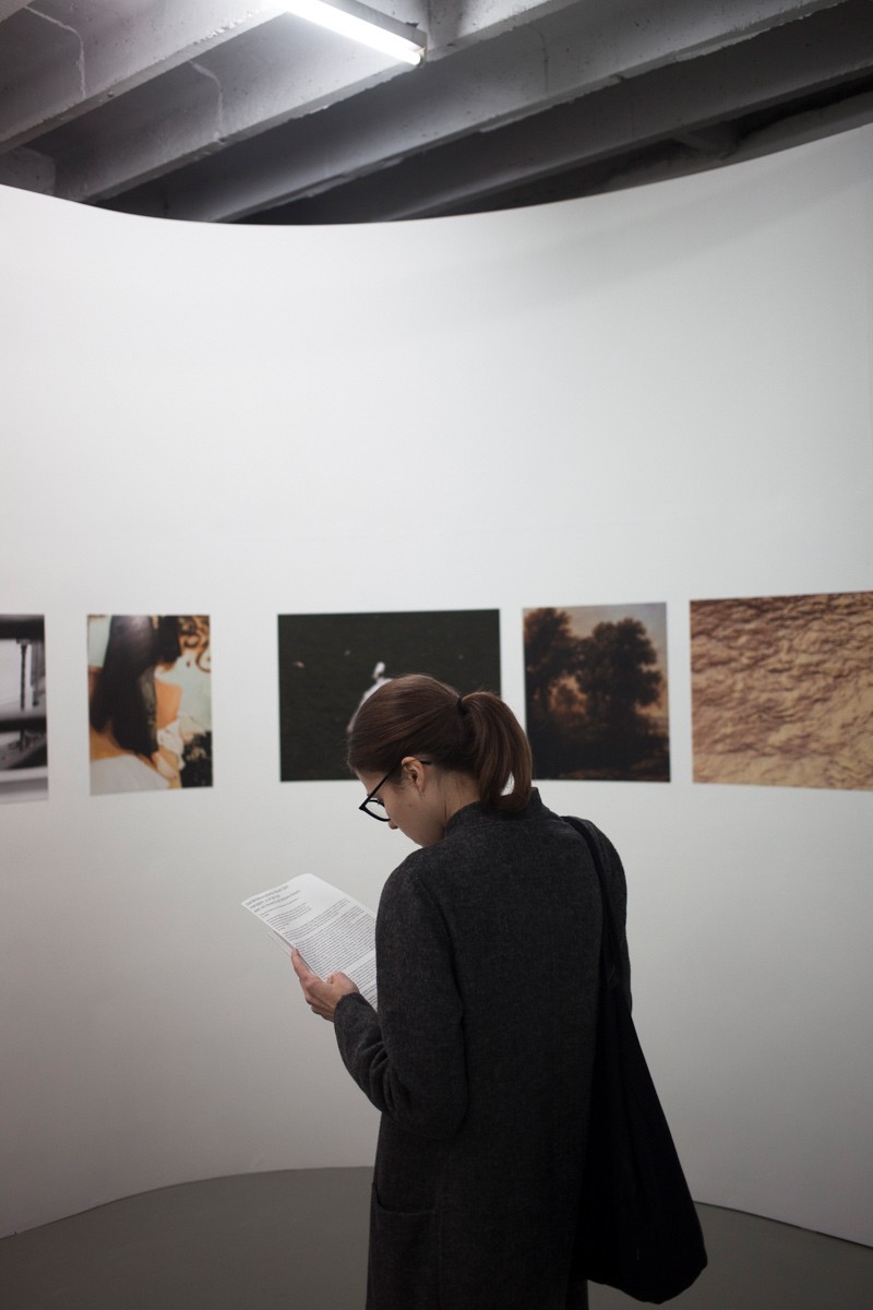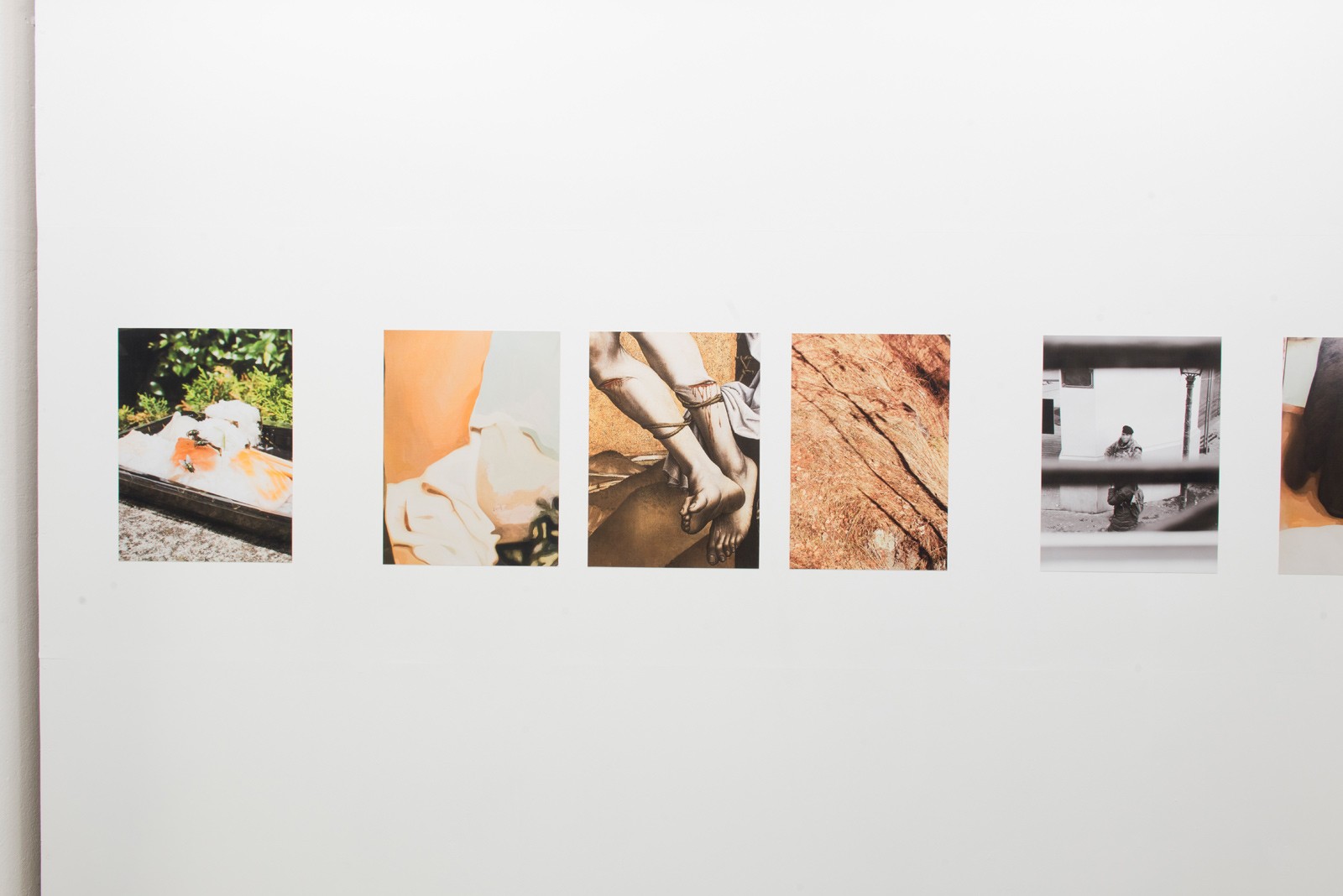 Pour réfléchir la question du hiéroglyphe, j'ai invité l'artiste Stéphanie Rosianu à faire une intervention textuelle pour mon exposition afin de créer un dialogue entre texte et images. Et l'architecte Lawrence Breitling a spécialement conçu une scénographie pour l'espace.