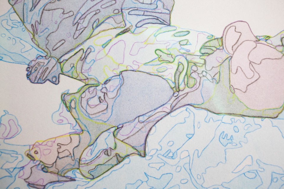C’est un processus volontairement lent et minutieux, un temps déraisonnable dévolu à la retranscription d’une image. Le geste manuel et la répétition de celui-ci dissolvent le sens ou l’origine de l’image. Il y a une tentative un peu folle, un peu absurde de comprendre la matière même de l’image jusqu’à l’épuiser, et finalement la faire disparaître ou plutôt… réapparaître.