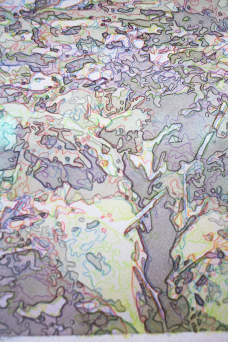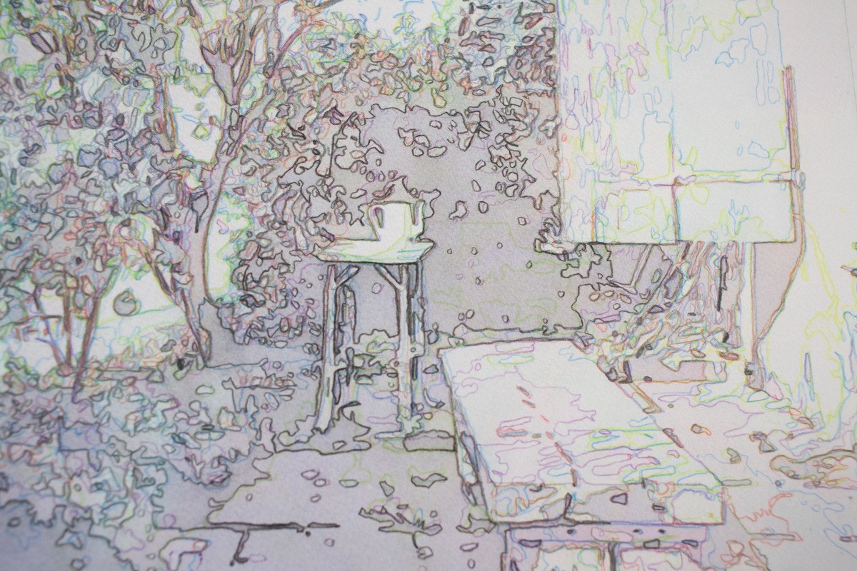 Il dissocie les couches de la synthèse soustractive: jaune/magenta/cyan/noir et s’attèle, avec de différentes techniques comme l’aquarelle ou les crayons de couleur à reconstituer les images en les dessinant une à une, et chacune en trois valeurs différentes.