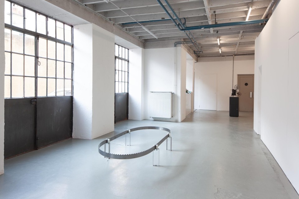 Affûtage (2021), Travail d’équipe (2020) et Qualität (2021) recréent l’atmosphère d’un atelier de fabrication en renvoyant d’une certaine manière à la fonction première de l’espace d’exposition qui était à l’origine une imprimerie. A travers un unique objet manufacturé, Adrian Fernandez Garcia questionne la frontière entre l’artiste et l’artisan·e·s·x. En portant l’accent sur l’importance d’un savoir-faire et de son assimilation, il se confronte à la production de ces objets-outils afin d’établir sa propre posture artistique.