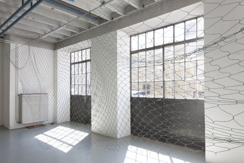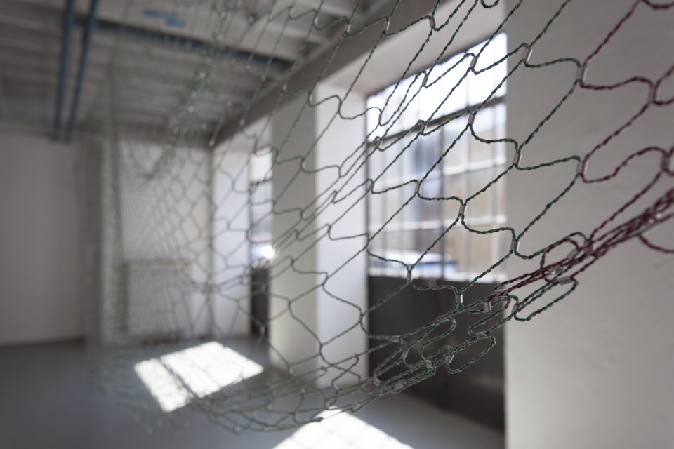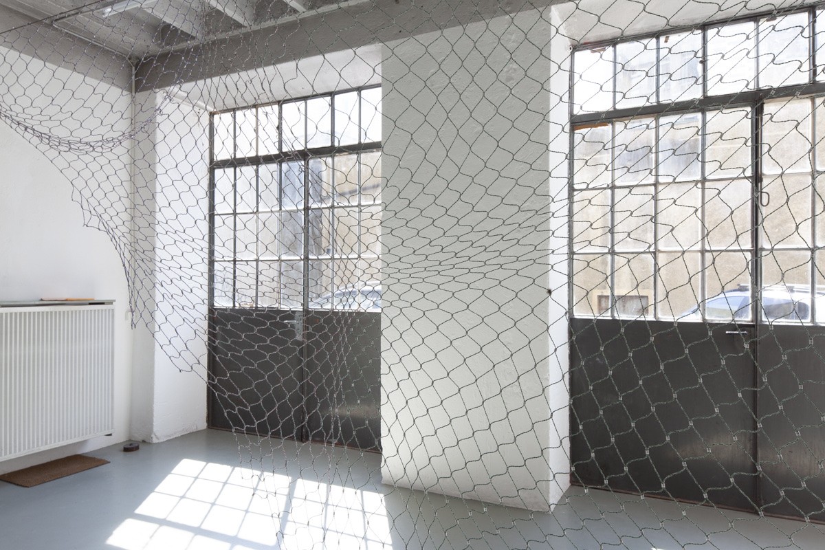 Ces accroches narratives - de nature visuelles, discrètes parfois fuyantes - invitent à raconter le hors-cadre. Nichées dans les interstices, les récits se faufilent dans les irrégularités de la matière. L’architecture déployée est souple; elle délimite indirectement, tout en épaisseur et en profondeur. Elle accueille volontiers des projections irrégulières qui sonnent comme des images qui se glissent entre les mailles du filet ou dans le grain du crépi. Les imperfections et les textures ouvrent et décalent le propos, permettant à d’autres murmures d’accompagner le regard.