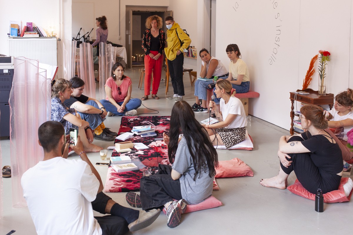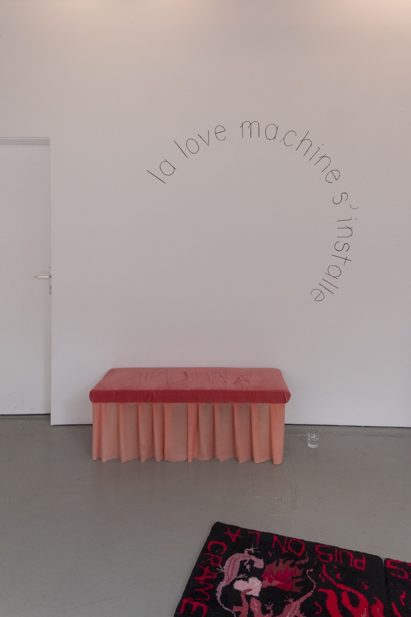 «la love machine s’installe» est pensé comme un lieu de rencontres, où les livres et la littérature sont tant le point de départ que le centre des réflexions. Les textes et les livres mis à disposition s’inscrivent dans une démarche de lutte contre le gender gap. Les clubs de lectricexs et les interventions s’engagent en faveur de lectures féministes, intersectionnelles, transversales et militantes. Tou·te·x·s sont invité·e·x·s à investir l’espace, lire, penser, écouter, échanger, et amener ses propres références afin de faire circuler et partager les savoirs. L’espace est pensé pour prendre le temps, s’asseoir, se coucher, se reposer.