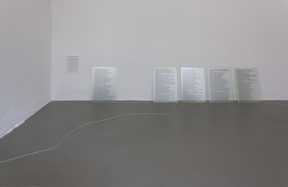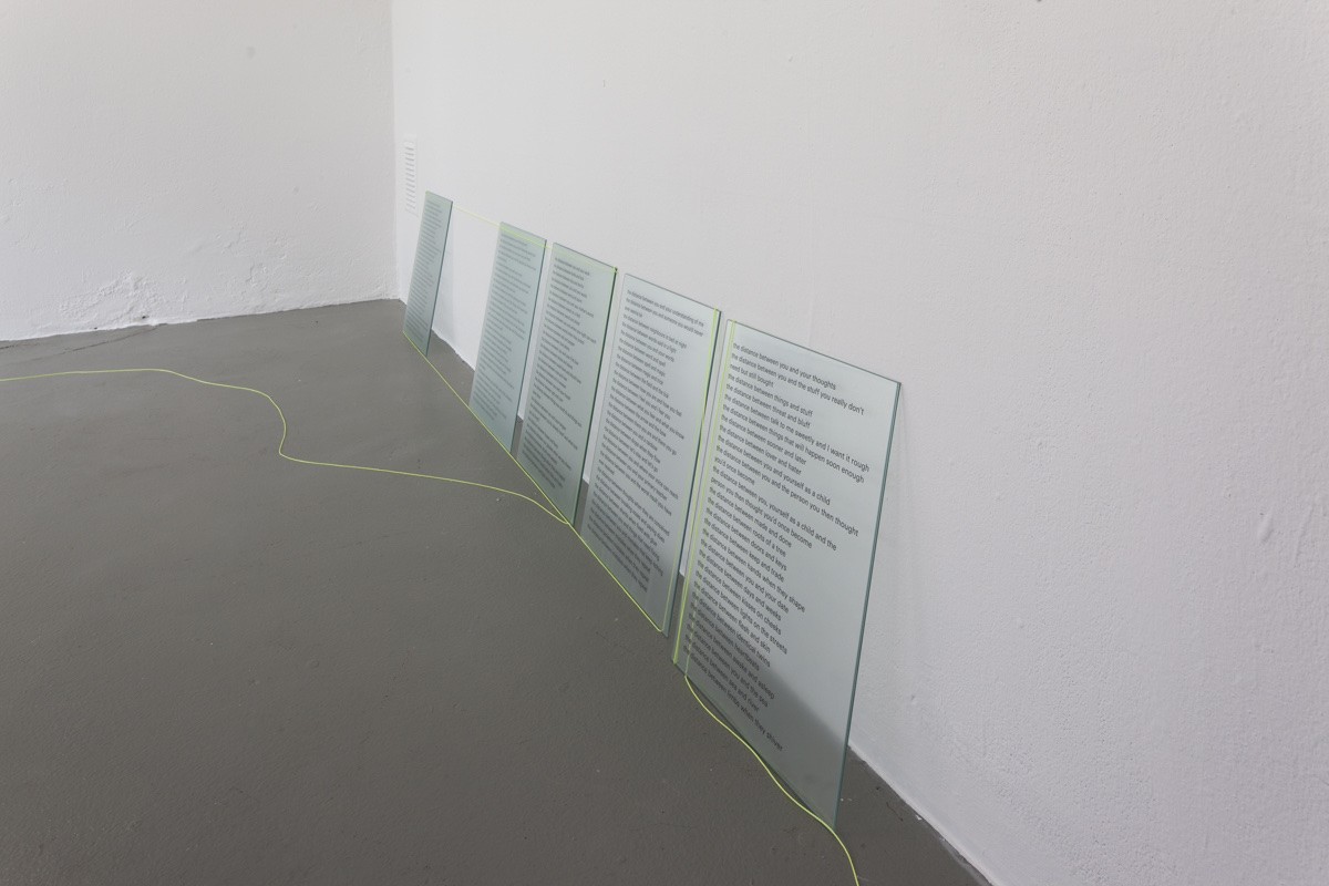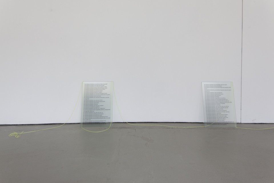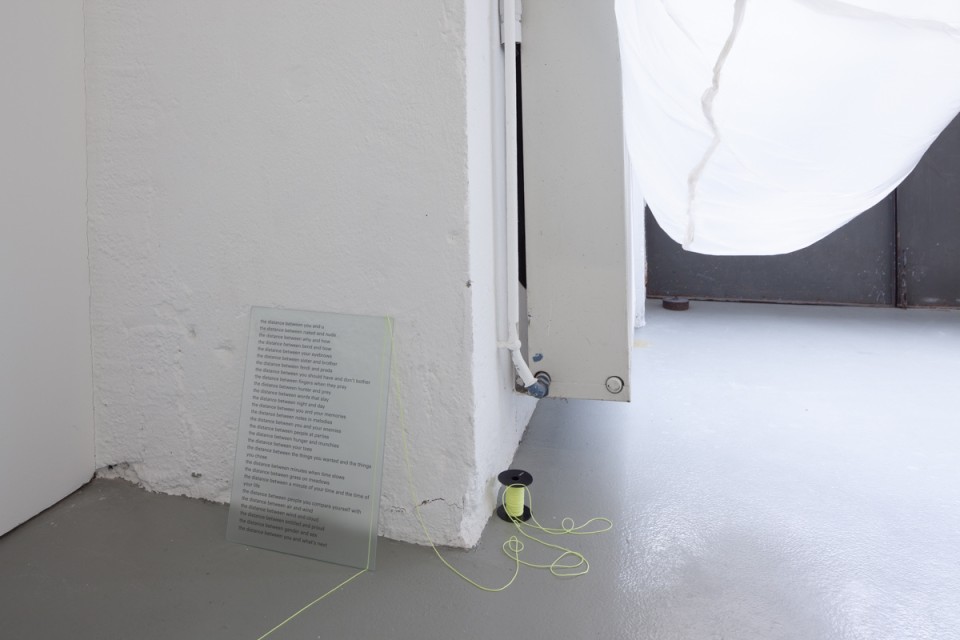 La forme labyrinthique du terrier, tout comme sa fonction, engendre toute une systématique de questions, de doutes et de rêveries. Comme en témoigne la célèbre nouvelle de Franz Kafka, il est d’emblée associé à l’idée de refuge — qui fait se sentir en sécurité — et met ainsi en tension la question des frontières et des limites (entre intérieur et extérieur notamment). Son potentiel fantasmagorique est le point de départ de cette exposition qui invite à penser les zones-limites ou barrières physiques et symboliques. Samuel Georgy et Johanna Kotlaris traitent de la notion de distance, de manière ironique, joyeuse, parfois anxieuse ou confrontante. Les artistes nous proposent de faire un pas de recul (ou de côté), pour penser ce concept de prime abord simple et pourtant si riche et complexe dans les déploiements intellectuels qu’il permet. Partant du principe que la distance renferme toujours une forme d’espace à combler — libre de projections et remplis par des vécus subjectifs — c’est cette investigation qui est donnée à voir et mise en scène au sein du lieu d’exposition.