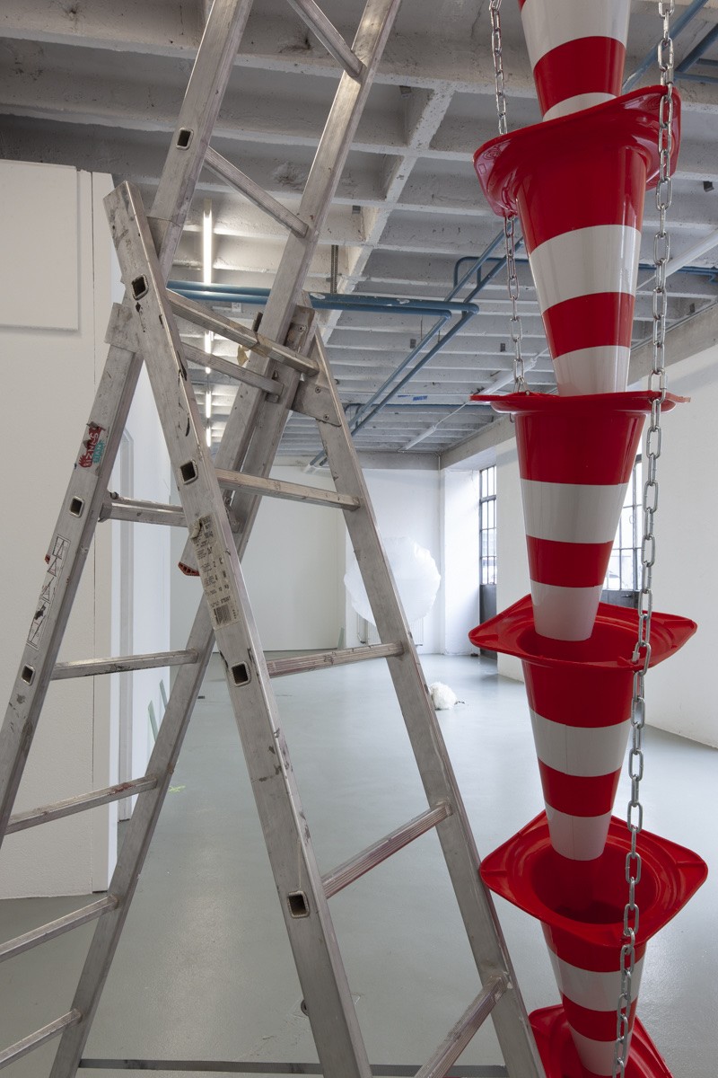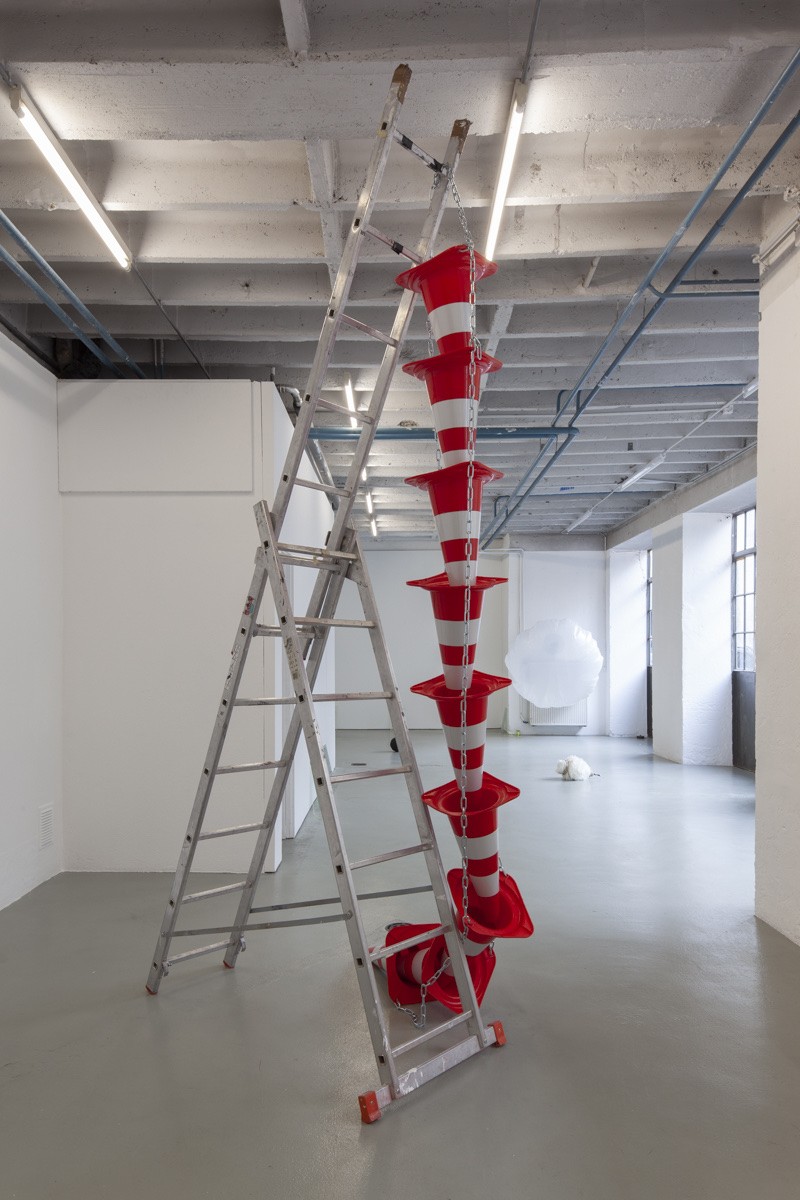 The labyrinthine nature of the burrow, and its function, generates a whole system of questions, doubts and daydreams. As Franz Kafka’s famous story illustrates, it is immediately associated with the idea of refuge – which makes us feel safe – and thus leads to questions of borders and limits (in particular between inside and outside). The phantasmagorical potential of the burrow is the starting point for this exhibition, which invites us to think about boundary zones or physical and symbolic barriers. Samuel Georgy and Johanna Kotlaris deal with the notion of distance, in an ironic, joyful, sometimes anxious or confrontational way. The artists invite us to take a step back (or sideways), to think about this concept, which at first sight is simple and yet so rich and complex in the intellectual developments it allows. Based on the premise that distance always contains a form of space to be filled – free of projections and filled with subjective experiences – it is this investigation that is presented and staged in the exhibition space.