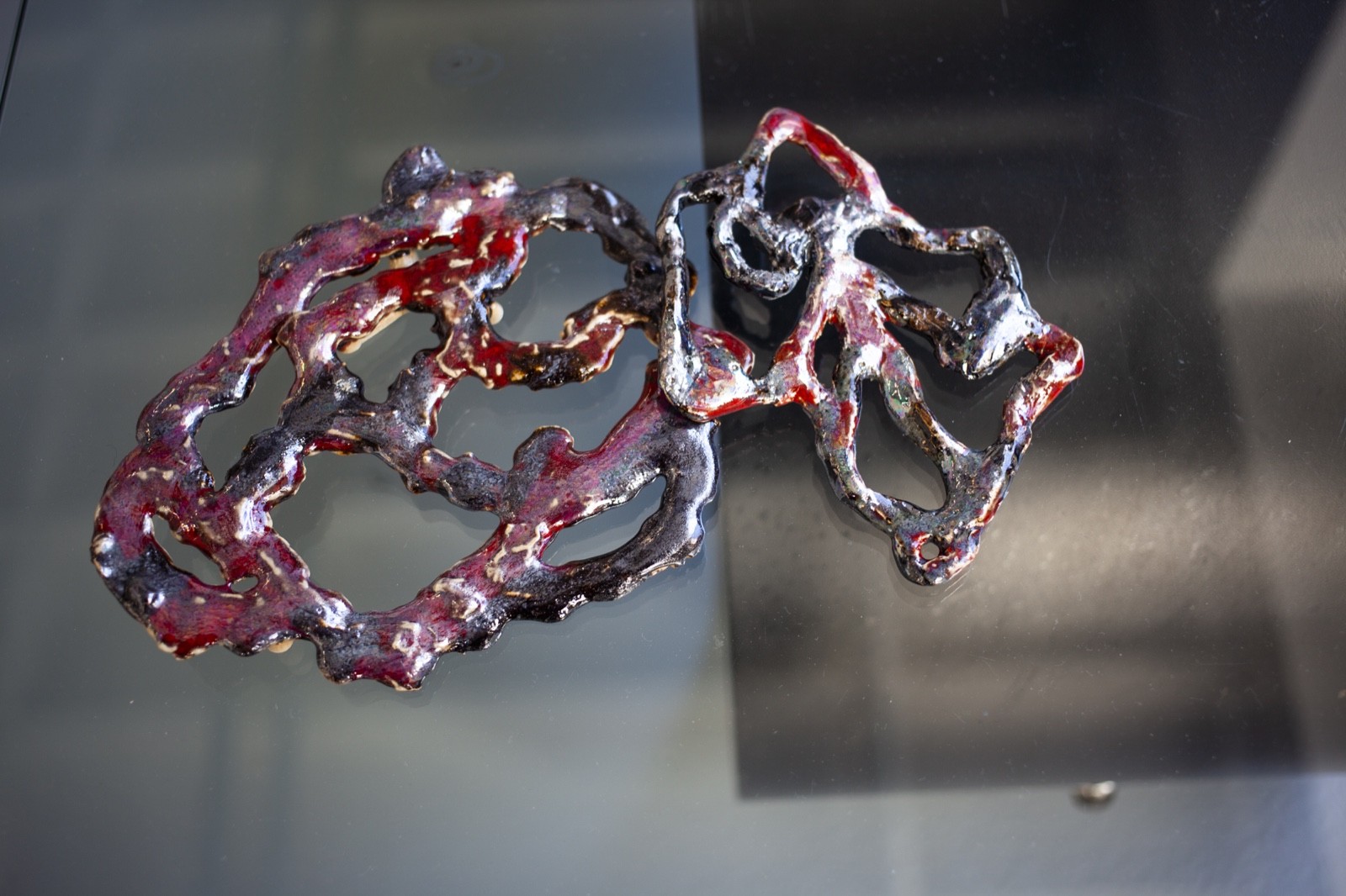 Emmanuel Mascolo (*1995) s’est formé à la céramique au CEPV de Vevey. Sa pratique se développe au fil des années pour intégrer le textile, ainsi que la performance. Ses expérimentations plastiques témoignent d’une réflexions poussée sur les matériaux, leur résistance et leurs possibilités esthétiques. La sculpture est au centre de ses recherches, qu’elle soit formulée par le corps ou par des techniques d’artisanat.