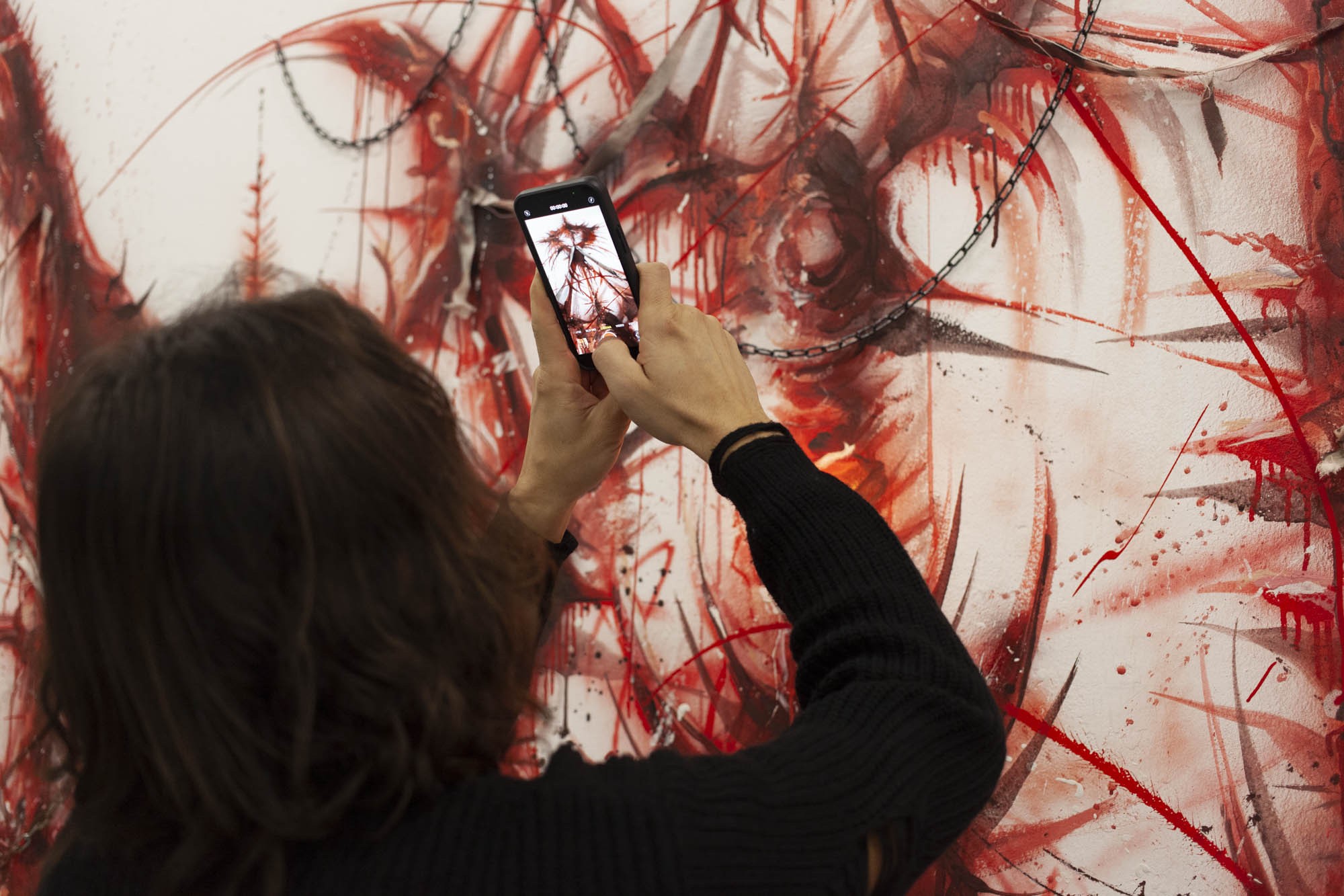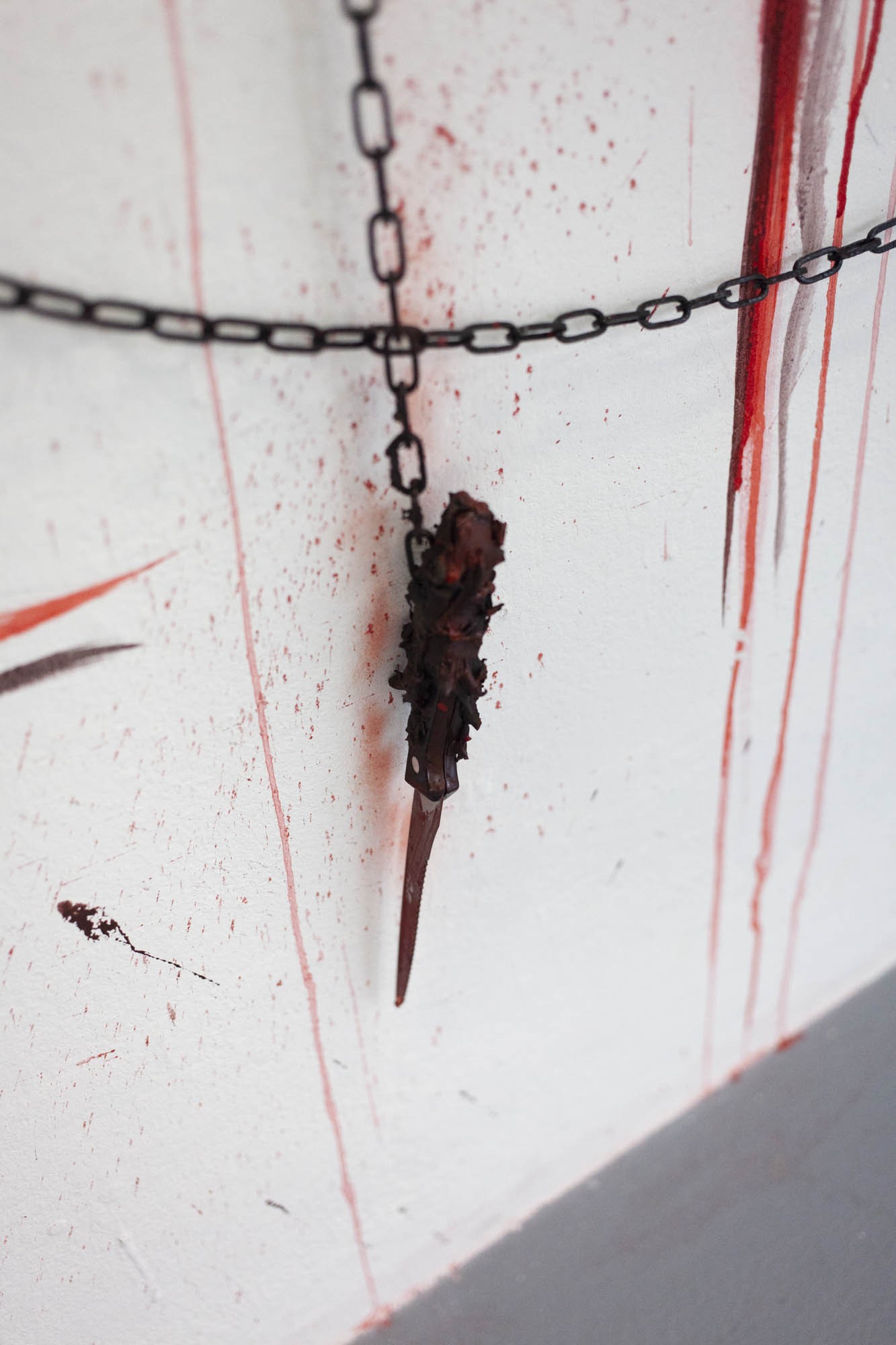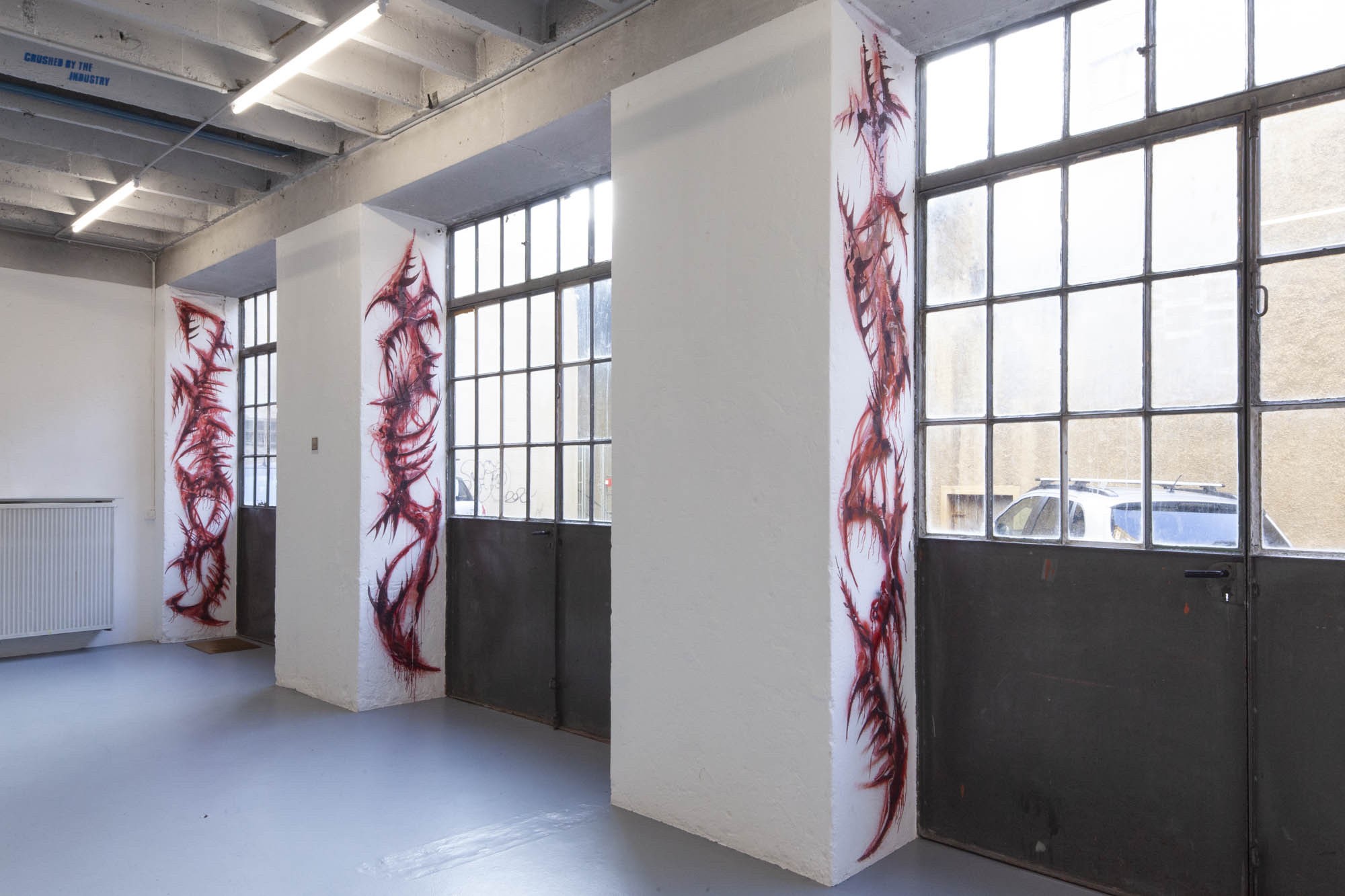 Sabrina Biro et ᛟᛞᛁᚾᛟ ont réalisé spécialement pour cette exposition une série de photographies, des sculptures et des peintures murales. Brutales et à la fois séduisantes, les oeuvres de ces deux artistes interrogent la fascination que nous pouvons entretenir avec la mort et ses représentations. Les vanités dépeintes dans l’histoire de l’art occidentales, à savoir des images représentants des ossements ou tout objets ayant un lien direct avec la mort, possédaient différentes significations mais convergeaient sur la même idée. Peu importe notre classe sociale, savoir, identité ou richesses, nous finirons tous·x·tes en poussière. Notre relation à la mort s’est développée ces dernières décennies avec le cinéma et les séries. D’une réflexion philosophique, notre oeil s’est orienté vers un attrait pour l’organique, le sensationnel. Sabrina Biro et ᛟᛞᛁᚾᛟ illustrent ce glissement sémantique et esthétique chacun·e à leur manière. Du Memento mori au gore, At the heart of it all propose au public une expérience sensorielle.