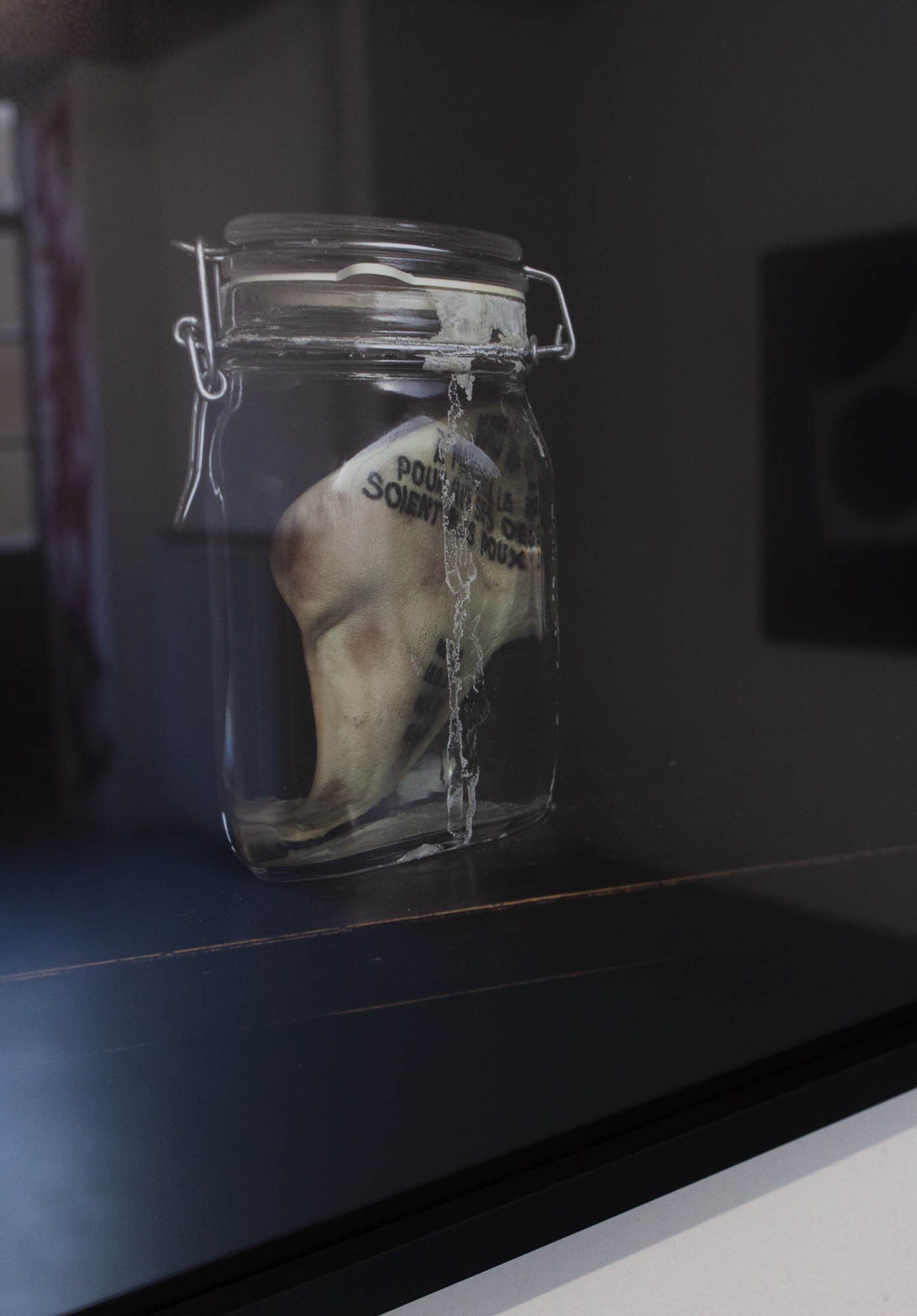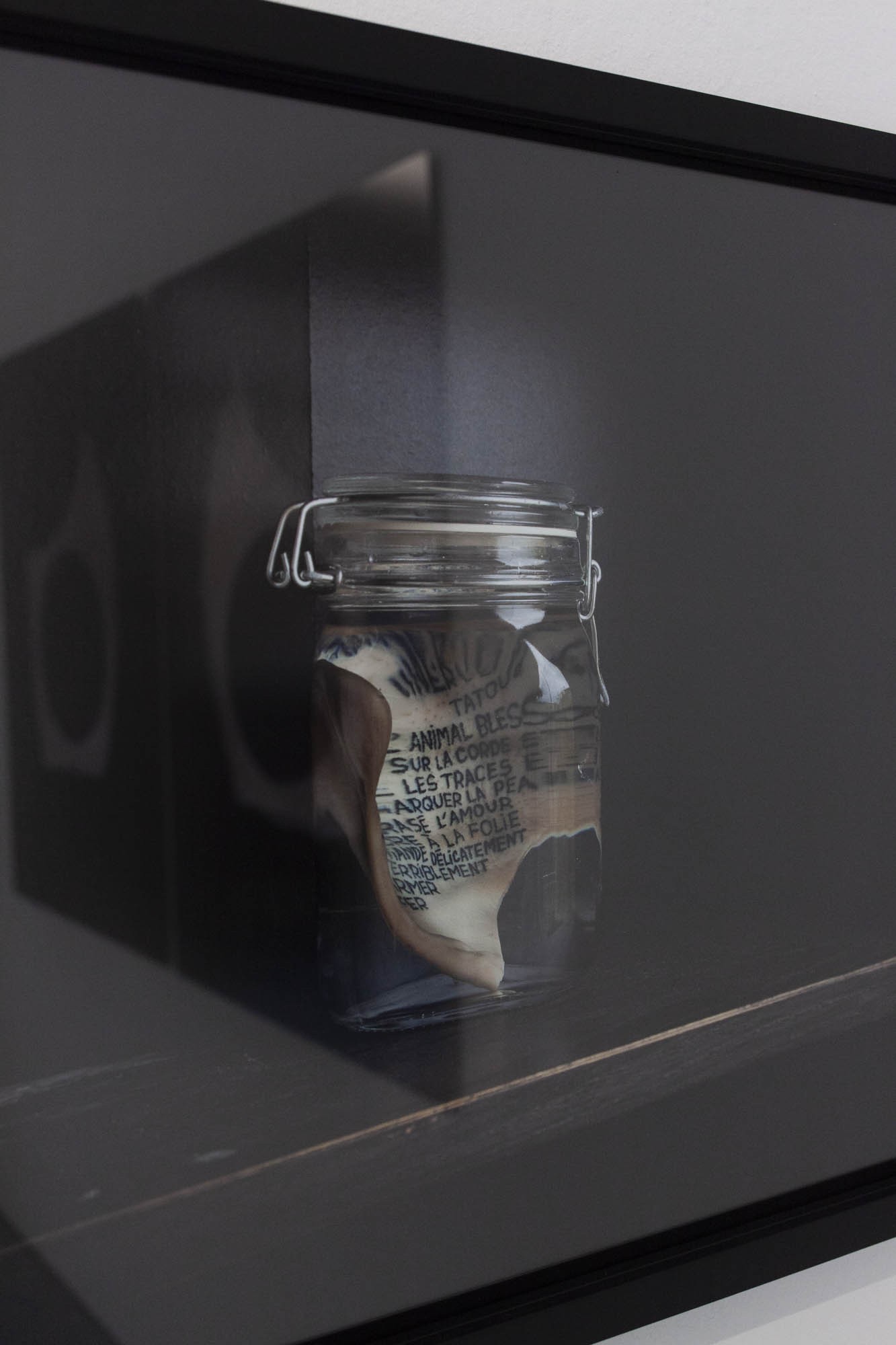 L’artiste lausannoise Sabrina Biro, taxidermiste de formation, récupère des dépouilles inutiles au Musée cantonal de zoologie de Lausanne. Elle travaille ensuite sur ce matériau, blanchi les os, les orne ou les transforme. L’intention est de retenir quelque chose, un peu comme le fait la photographie, garder une individualité, une trace du vivant. Elle tatoue des textes sur des oreilles de porc, marque, trace, s’approprie des chairs qui ne lui appartiennent pas, s’essaie aux machines de traçage. Sabrina Biro entretient une relation particulière avec le vivant. Iconoclasme doux, elle joue avec nos idées de la mort et, surtout, sur la dépossession de notre enveloppe charnelle.