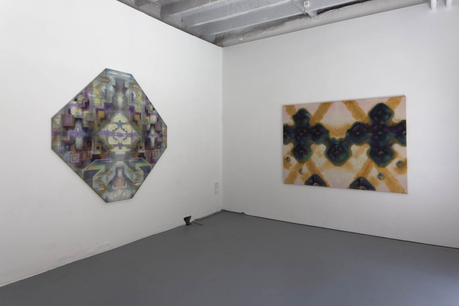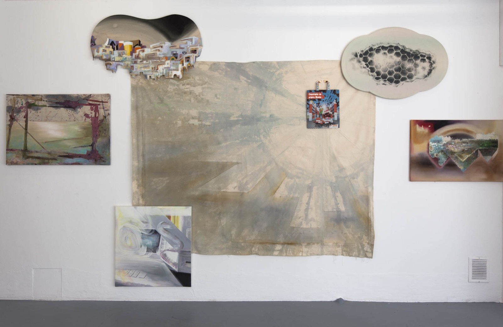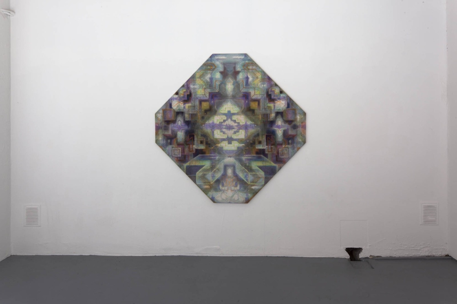 L’exposition intitulée sobrement Construire sa propre mania, combine à la manière parodique d’une rétrospective, certains effets typiques de la cosmologie personnelle de l’artiste et qui décline un vocabulaire à la fois formel et métaphysique navigant entre les collages surréalistes d’Ayham Jabr, les divagations graphiques de la revue Métal Hurlant ou les casinos bariolés de l’architecte bolivien Freddy Mamani Sylvere: abstraction cosmique, constructivisme transcendantal, ornementalisme baroque, paysages oniriques ou natures mortes psychédéliques.