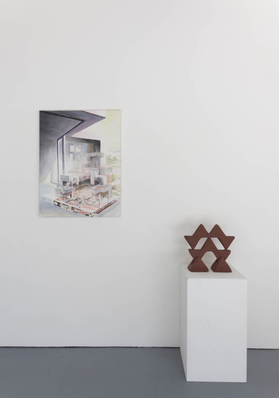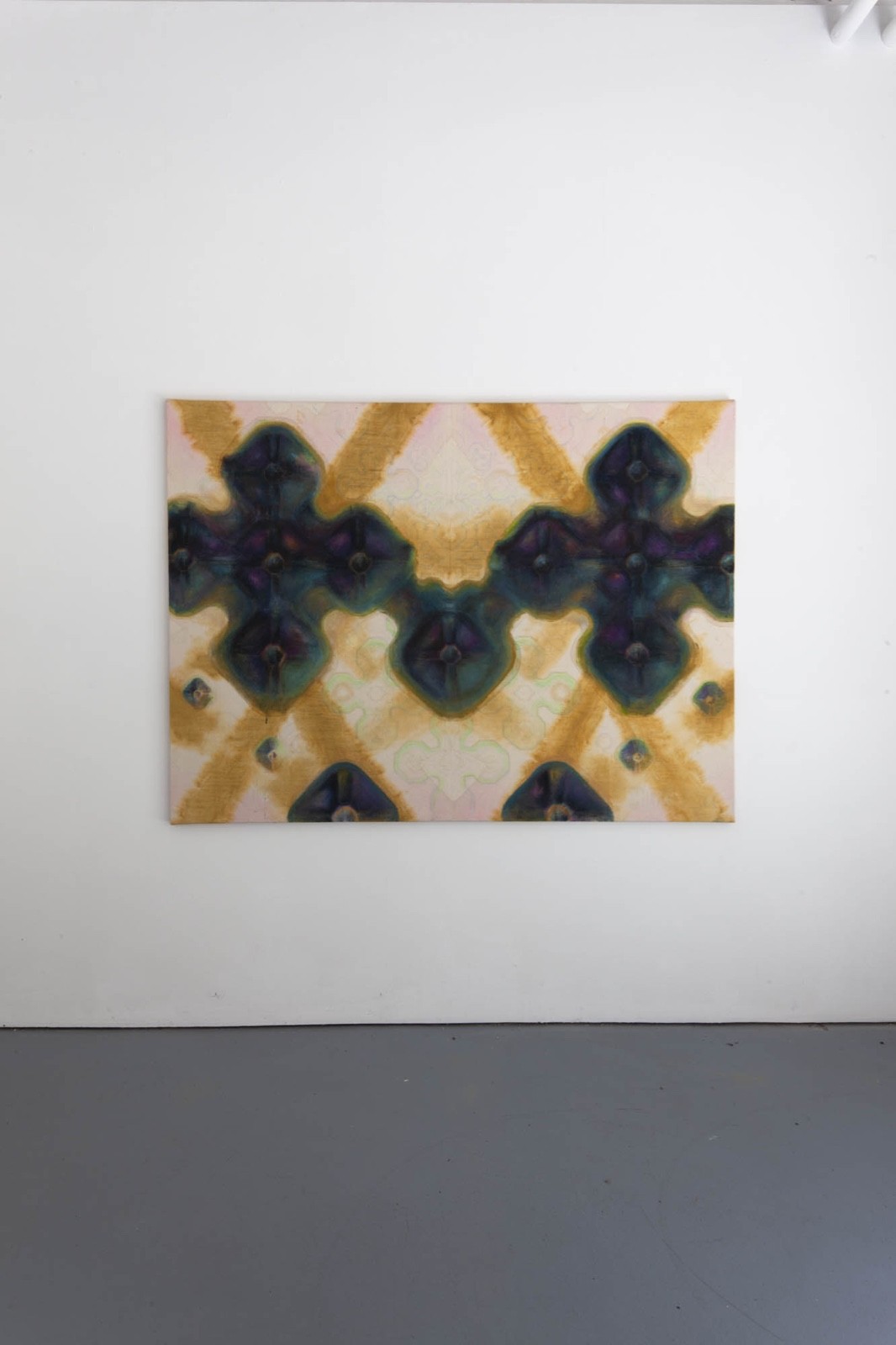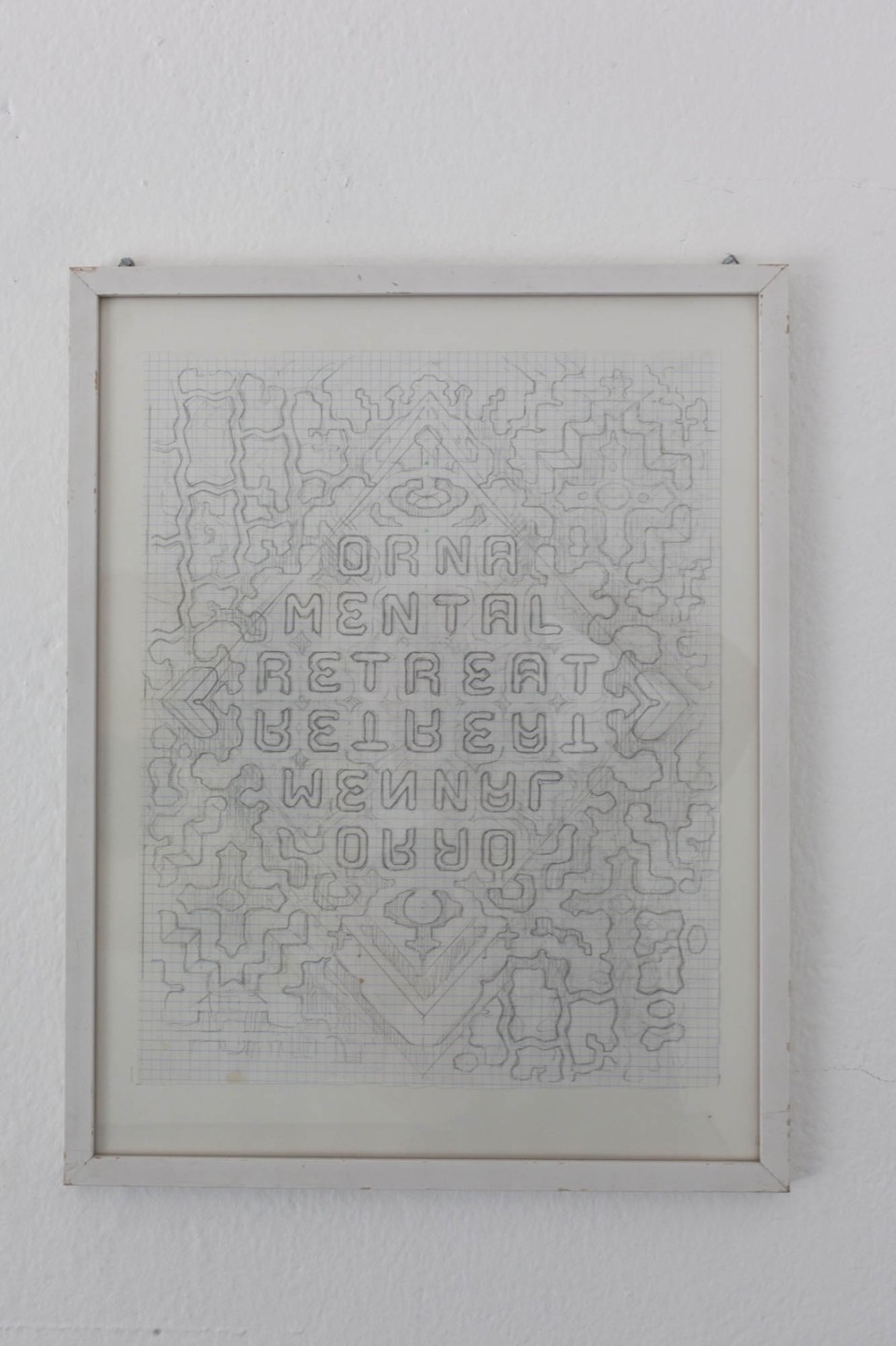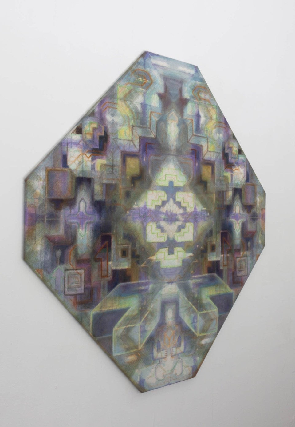 L’exposition intitulée sobrement Construire sa propre mania, combine à la manière parodique d’une rétrospective, certains effets typiques de la cosmologie personnelle de l’artiste et qui décline un vocabulaire à la fois formel et métaphysique navigant entre les collages surréalistes d’Ayham Jabr, les divagations graphiques de la revue Métal Hurlant ou les casinos bariolés de l’architecte bolivien Freddy Mamani Sylvere: abstraction cosmique, constructivisme transcendantal, ornementalisme baroque, paysages oniriques ou natures mortes psychédéliques.