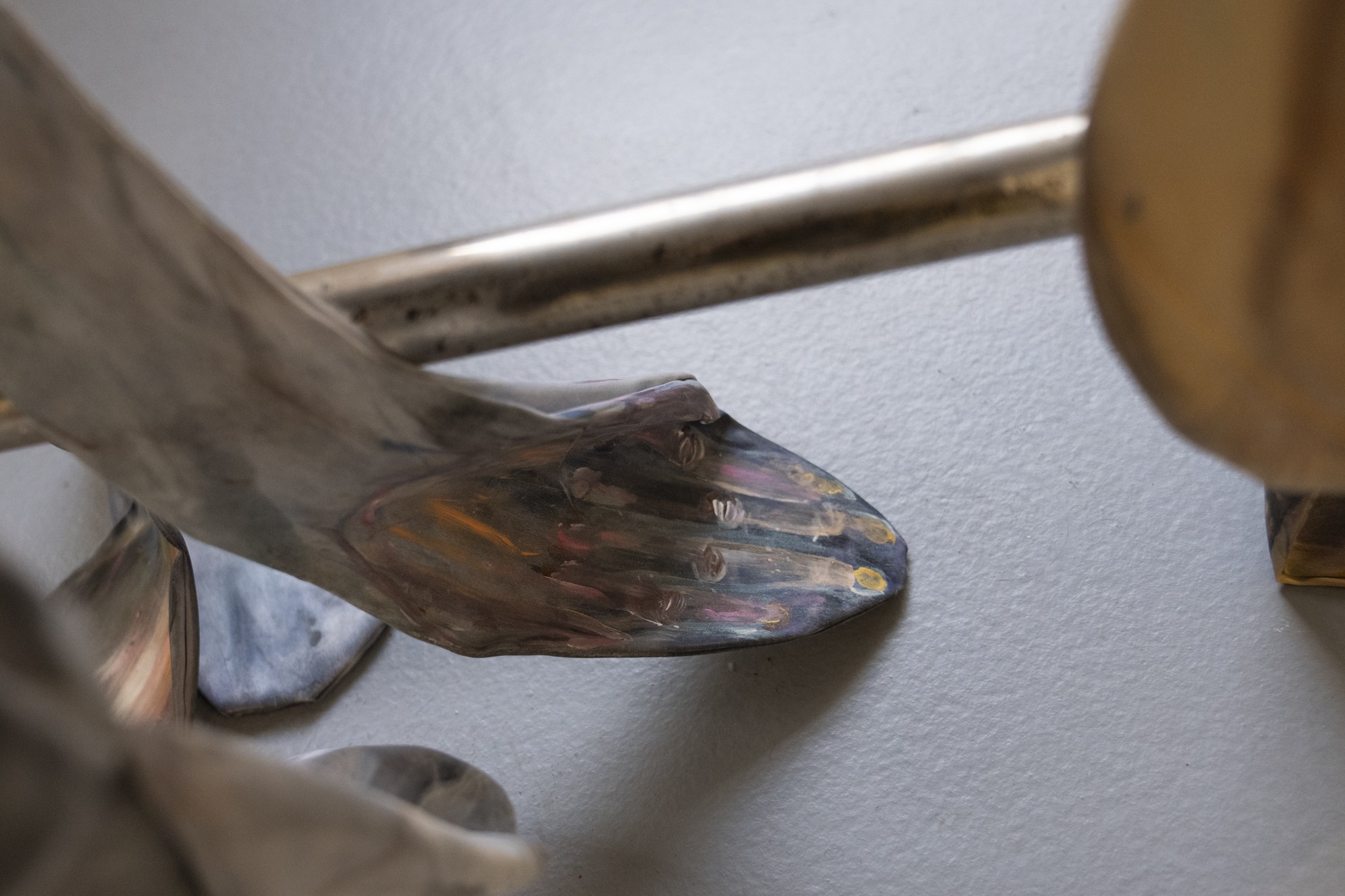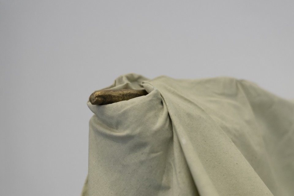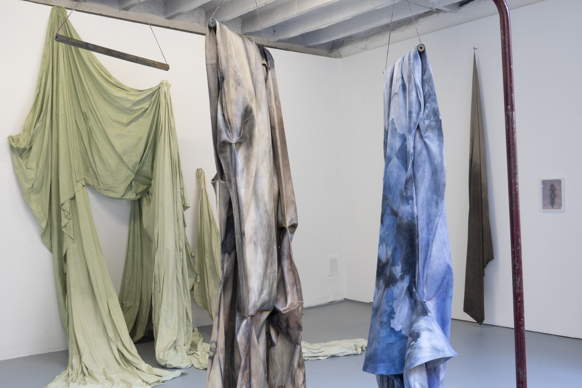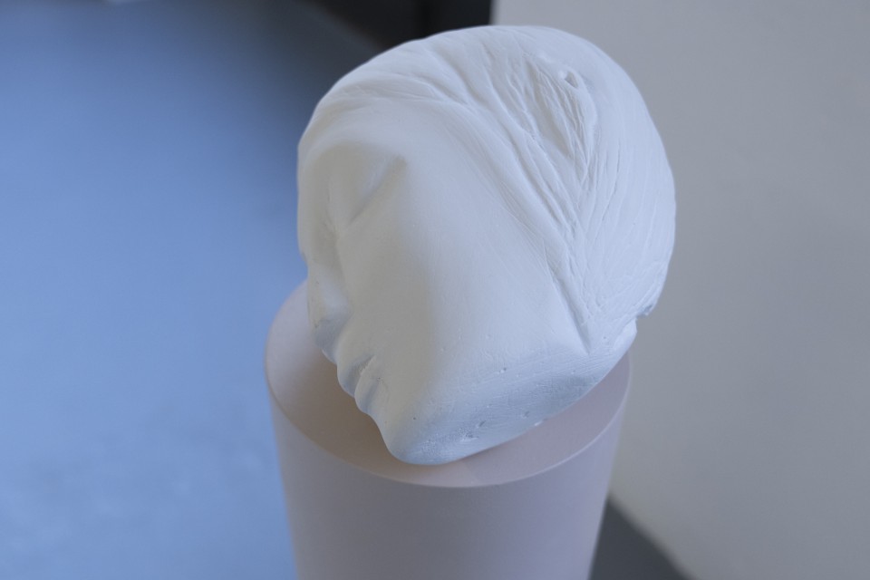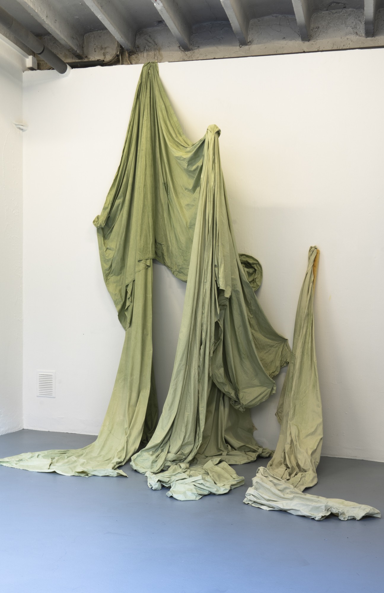 Il y a dans le travail de Céline Peruzzo une désarmante déambulation entre les époques, elle fait référence avec ses «dipinti» aux drapés antiques qui se figent sur des statues de déesses grecques, elle nous prépare des costumes démesurés de femmes grenouilles d’un temps futuriste et nous rappelle au modernisme avec sa tête à la Brancusi. Les références sont affichées, ce sont des hommages, des déambulations dans l’histoire de l’art. Céline met en place des accessoires, des objets, un décor pour une pièce de théâtre imaginaire, une scène dans laquelle les protagonistes étaient/sont/seront des femmes.