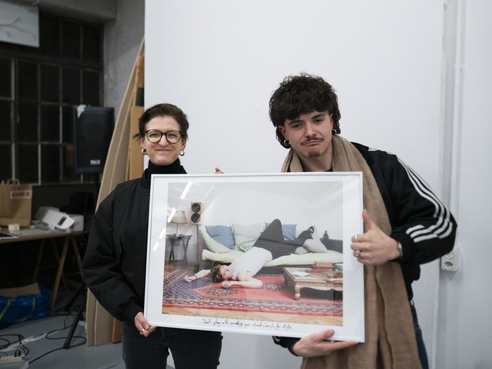 À travers une exposition éphémère, montée en un temps record, ils·elles mettent en jeu leurs propres œuvres dans un loto, où chaque visiteur·euse peut tenter sa chance gratuitement. Un tirage au sort décidera des heureux·ses gagnant·e·s et les images disparaîtront peu à peu du mur, transformant l’espace d’exposition au fil de la soirée.