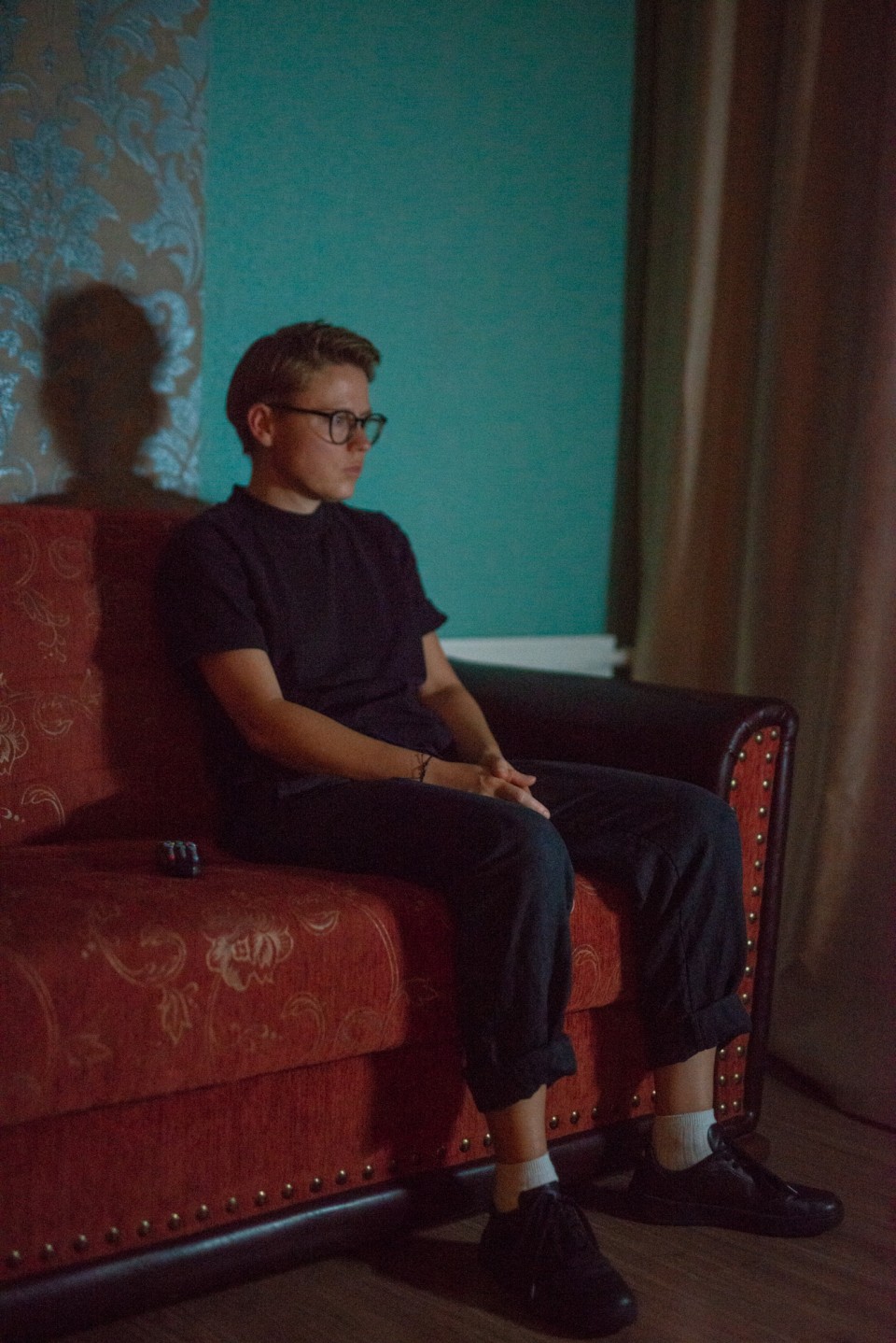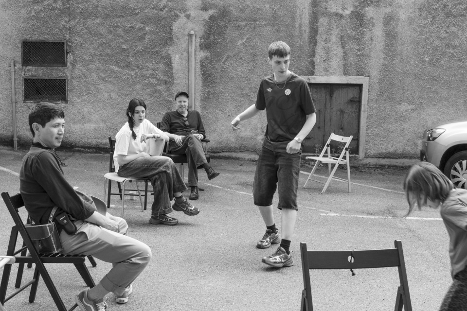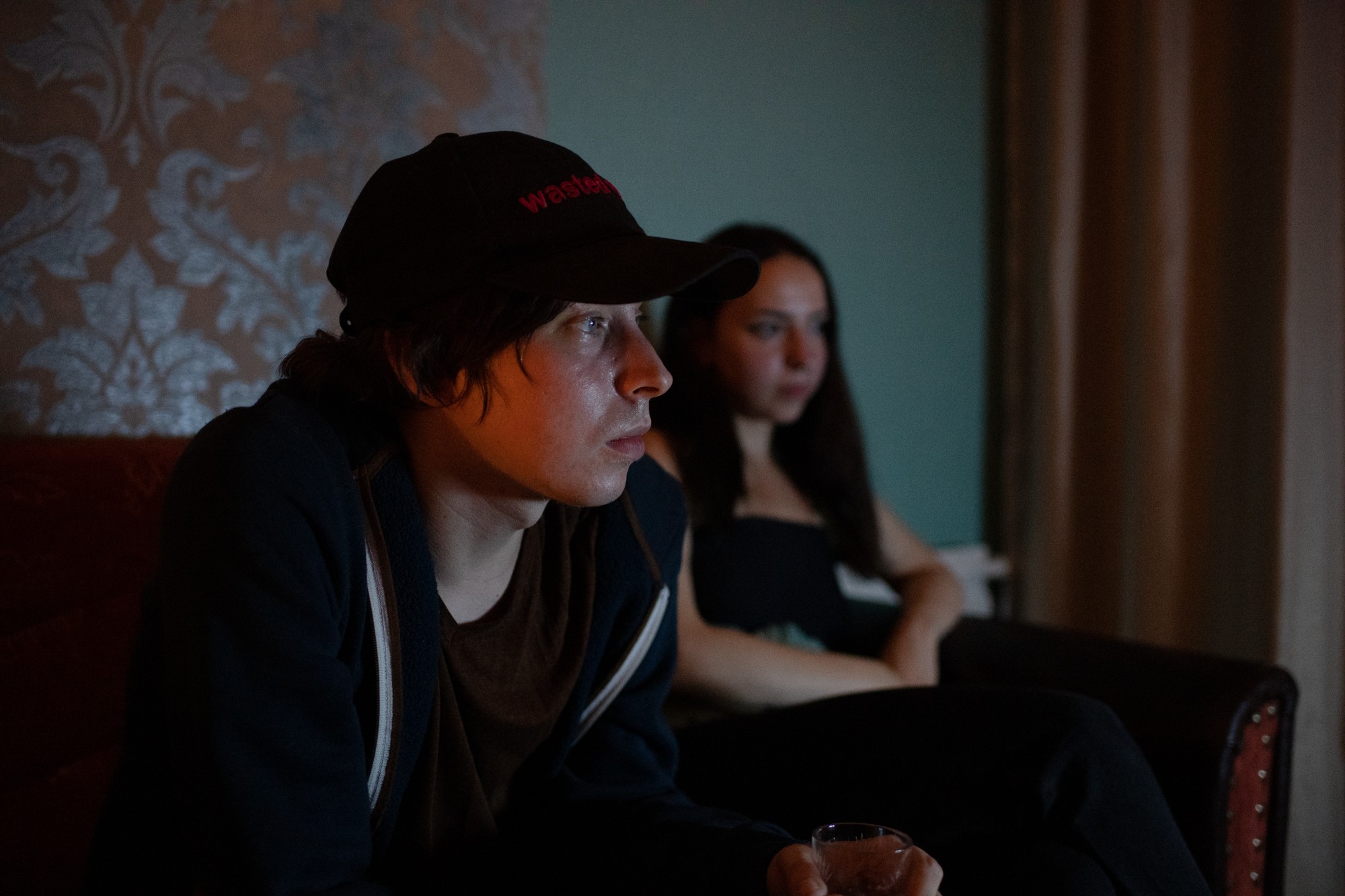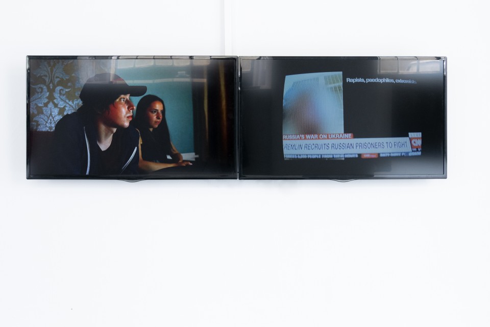 Narva est une ville estonienne située à la frontière avec la Russie. La plupart de ses habitants parlent russe et, depuis la disparition de l’Union soviétique, nombre d’entre eux sont officiellement apatrides ou titulaires de passeports dits «étrangers». Pour limiter l’influence de la propagande russe, le gouvernement estonien a coupé les principales chaînes d’information russes lorsque la Russie a lancé sa guerre d’agression contre l’Ukraine au printemps 2022. Zielony a enregistré ses images dans un intérieur sombre. Éclairés uniquement par la lumière vacillante d’un écran de télévision, plusieurs jeunes gens commentent le programme télévisé en zappant sur les chaînes. On entend de l’estonien, du russe, de l’ukrainien et de l’anglais. Des scènes de la guerre en cours alternent avec des longs métrages, des séries, de l’ésotérisme, de la musique, et presque tout semble teinté d’un climat de violence. On pourrait parler d’un adieu apocalyptique au présent qui défile dans le salon: pourtant, ce que montre l’écran, c’est un quotidien ordinaire, dont les réflexes illuminent les visages des jeunes spectateurs.