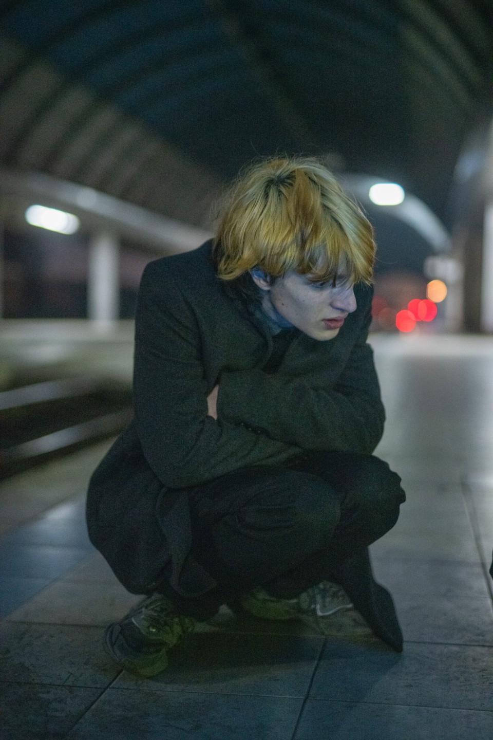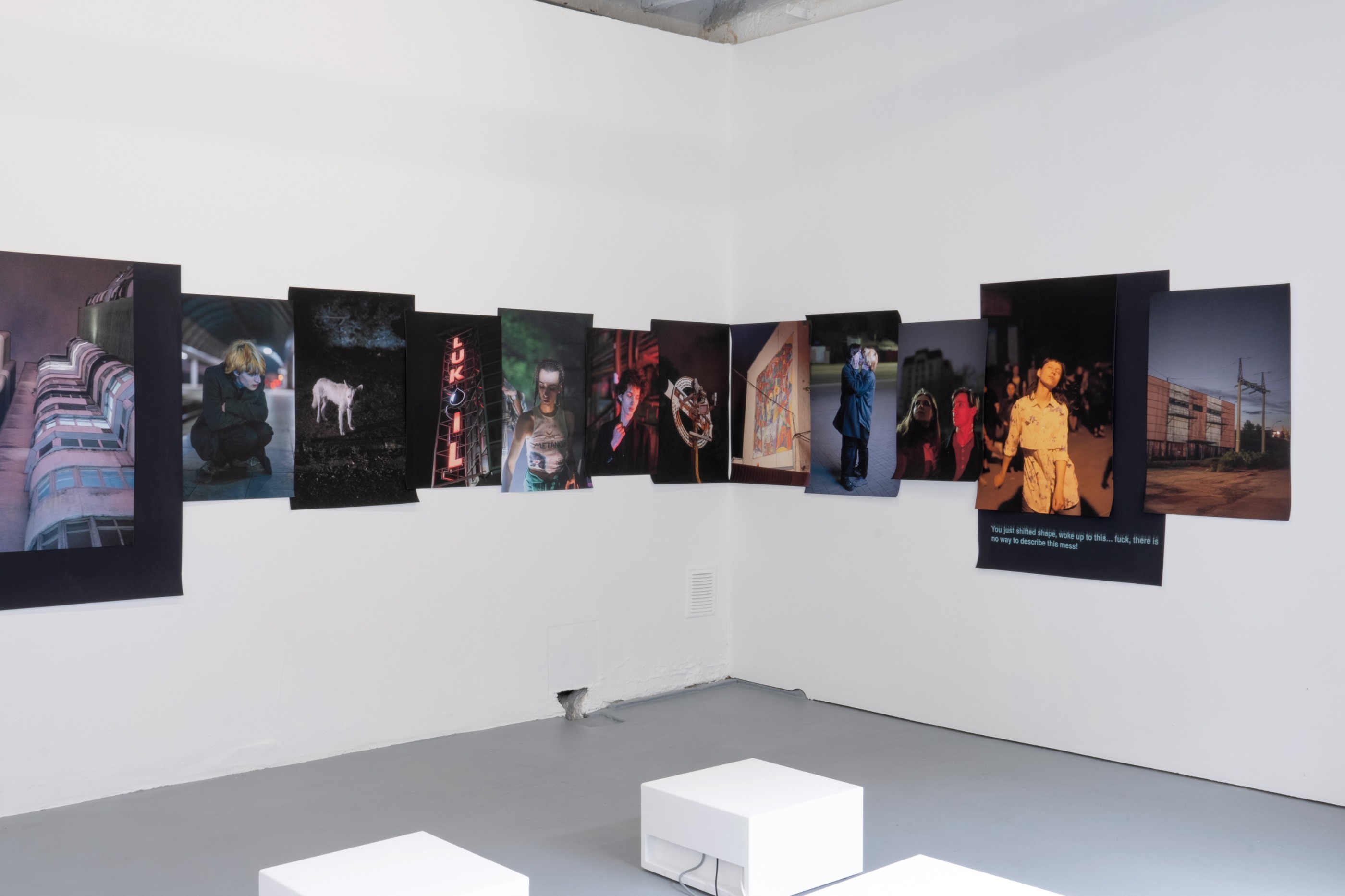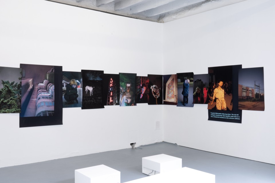 Dans le brouillard de la guerre, je reconnais les alliés marginalisés—les photographiés et le photographe. Les actions se situent en dehors du champ de vision habituel; les figures sont solitaires et semblent placées au hasard dans le paysage urbain. Les photographies ne dépeignent pas la guerre. Elles s’abstiennent d’articuler le sens derrière l’obscurité imposée, non pas en raison de décisions individuelles, de préoccupations écologiques ou de nouveaux modes de vie, mais plutôt en raison d’une privation forcée—et pourtant, cette privation est un petit maillon dans la chaîne d’actions criminelles. Quand je regarde les personnes sur ces photographies, je réalise que moi aussi, je suis dans la zone grise d’une sécurité hypothétique.”